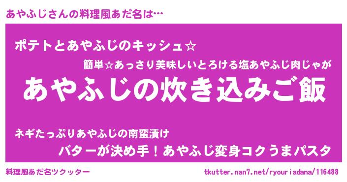 | ヘコむあだ名 | 『あやっちょ』『あやふじ(爆)』 |