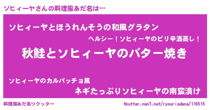 | ヘコむあだ名 | 『ソヒィーヤ(遠い目)』『ソヒっふぃ~』 |