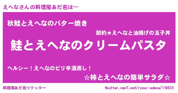 | 女子向けラノベタイトル風あだ名 | 『死神えへなの再婚』『えへなの契約王妃』 |