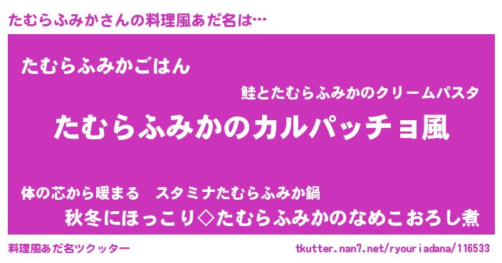 | 肩書あだ名 | 『たむらふみか教官』『たむらふみか大将』 |