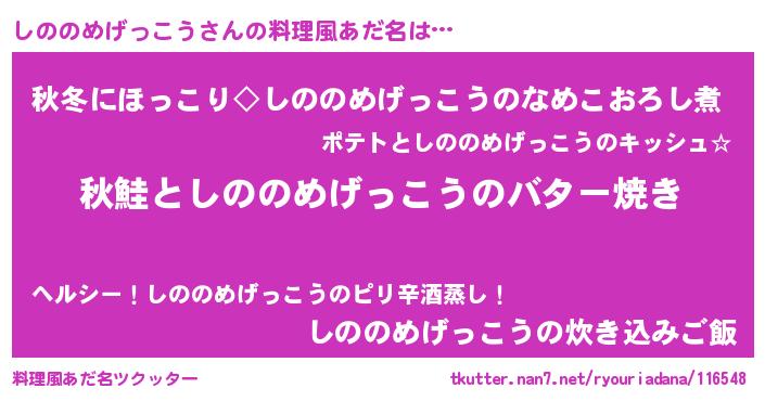 | 意味不明あだ名 | 『永久保存しののめげっこう』 |