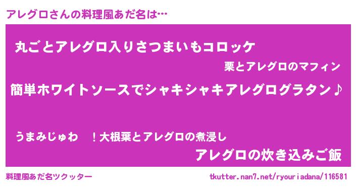 | 男性向けラノベタイトル風あだ名 | 『アレグロの嫁は女の子じゃないと思った?』 |