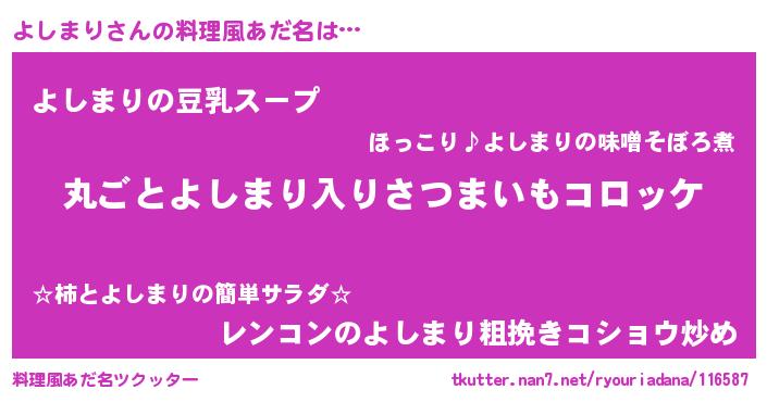 | 意味不明あだ名 | 『住所不定無職よしまり(10歳)』 |