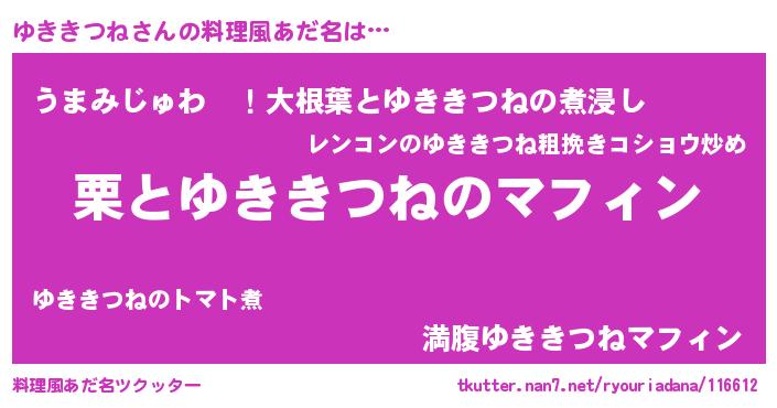| 意味不明あだ名 | 『ゆききつねフォーエバー』 |