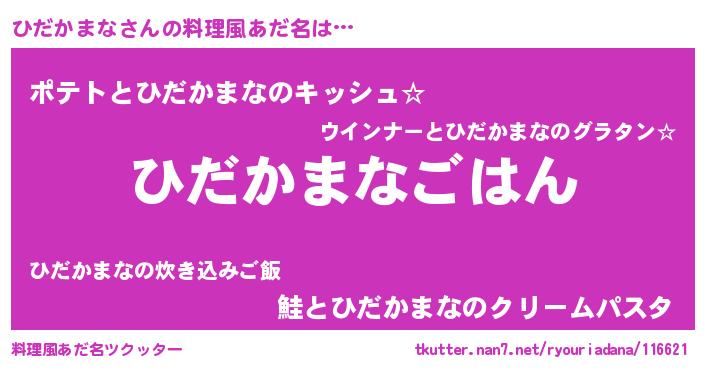 | ポケモン風あだ名 | 『ヒダキング』『ヒヒダカマナ』 |