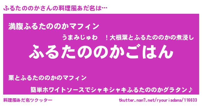 | 男性向けラノベタイトル風あだ名 | 『転生したらふるたののかだった件』 |