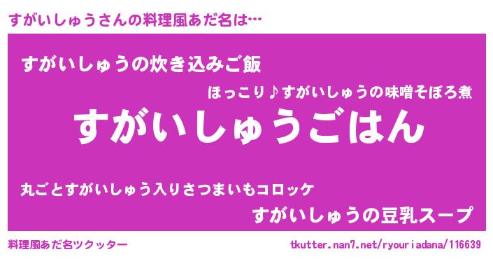 | 胡散臭い通販商品みたいなあだ名 | 『信頼と実績のサプリメント…その名も「すがいしゅう」』 |
