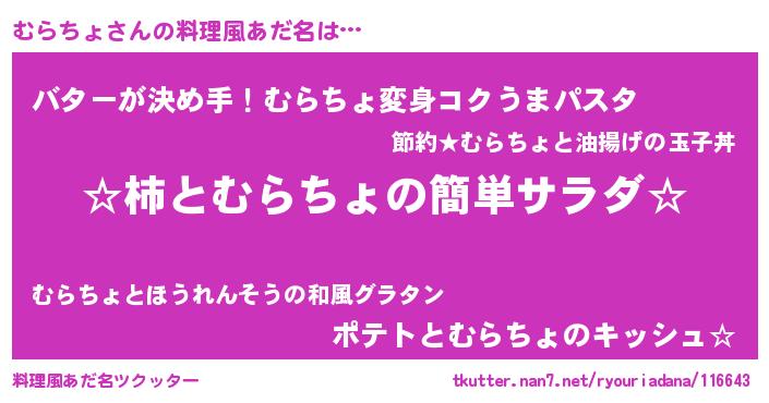 | ヒーロー風カッコイイあだ名 | 『愛の使者むらちょ』『銀牙騎士ムラ』 |