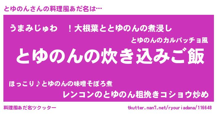 | 意味不明あだ名 | 『とゆのんフォーエバー』『自称とゆのん』 |