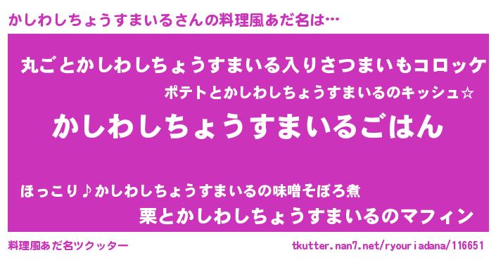 | 伝説のあだ名 | 『孤高の遊び人かしわしちょうすまいる』 |