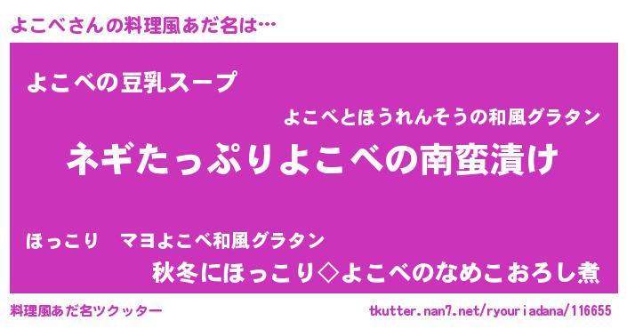 | 胡散臭い通販商品みたいなあだ名 | 『億万長者になれるブレスレット…その名も「よこべ」』 |