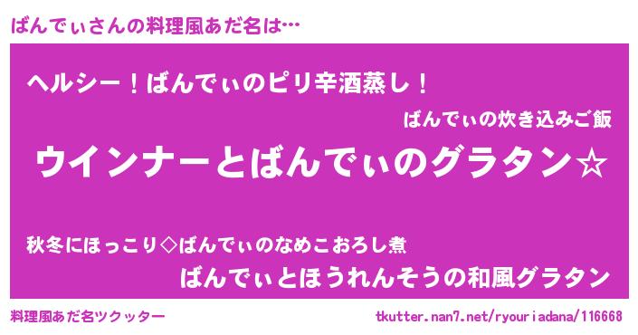 | 可愛いあだ名 | 『ばんちー』『ばんうちぇる』 |