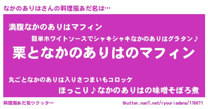 | 可愛いあだ名 | 『なかのありはママ』『なんなん』 |
