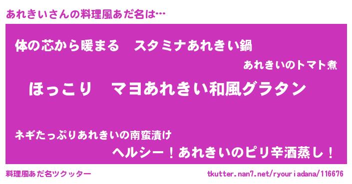 | ヒーロー風カッコイイあだ名 | 『仮面アレダー』『ウルトラあれきいマン』 |
