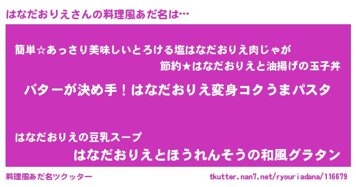 | ヘコむあだ名 | 『はなだおりえ(苦笑)』『はなにゅー』 |