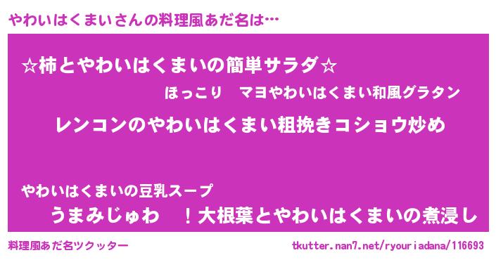 | ヒーロー風カッコイイあだ名 | 『ウルトラ戦士ヤワイハクマイ』 |