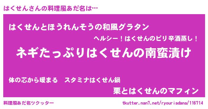 | 男性向けラノベタイトル風あだ名 | 『ハクセンアートオンライン』 |