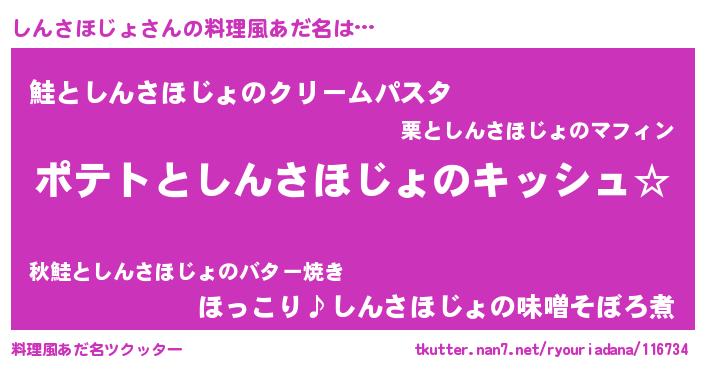 | ポケモン風あだ名 | 『ヒシンサホジョ』『シックウザ』 |