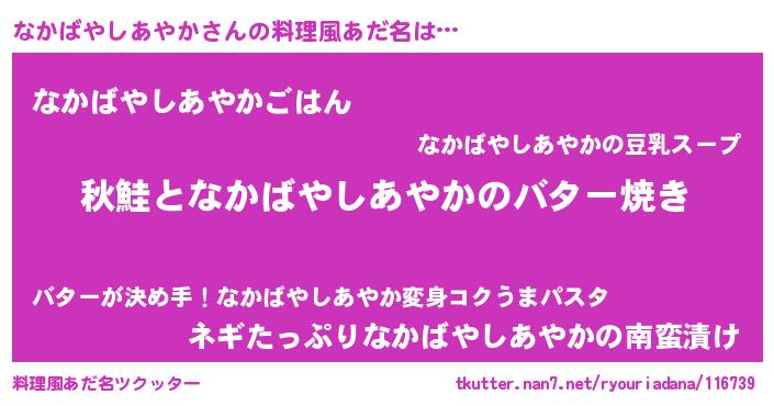 | 意味不明あだ名 | 『永久保存なかばやしあやか』 |