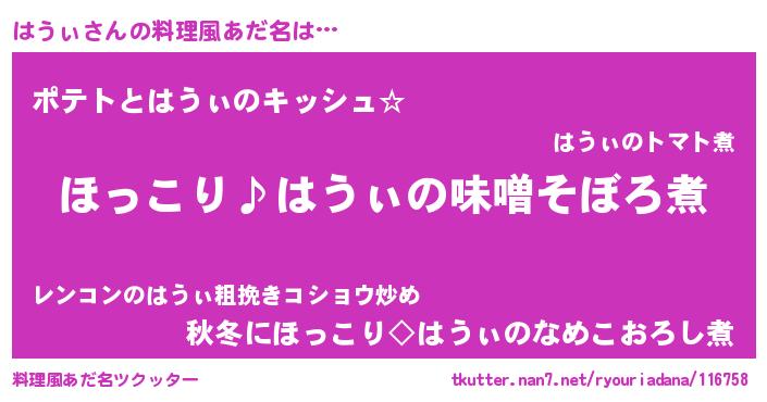 | 男性向けラノベタイトル風あだ名 | 『はうぃの憂鬱』『魔法科高校のはうぃ』 |