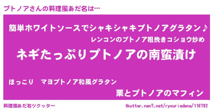 | 意味不明あだ名 | 『ペロリンプトノア』『自称プトノア』 |