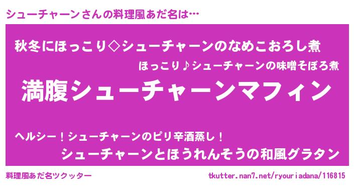 | 胡散臭い通販商品みたいなあだ名 | 『絶対に幸福をもたらす健康食品…その名も「シューチャーン」』 |