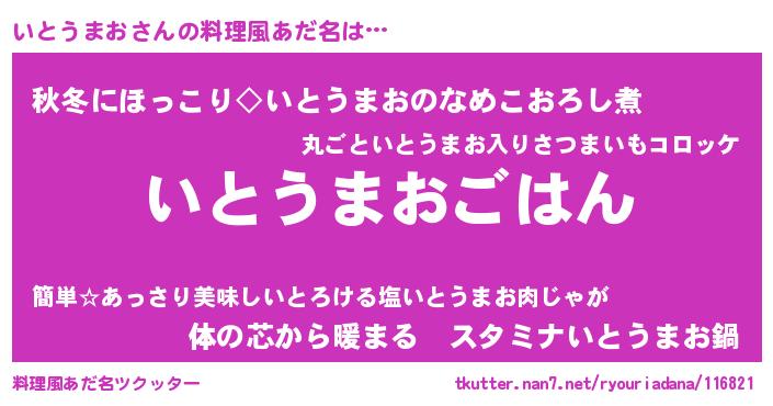 | 意味不明あだ名 | 『めかぶ科いとうまお属』 |