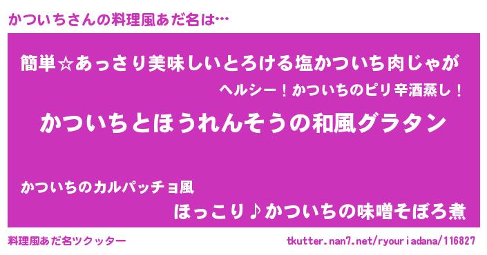 | ヘコむあだ名 | 『かついち(遠い目)』『かつもー』 |