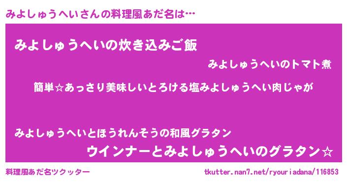 | 意味不明あだ名 | 『永久保存みよしゅうへい』 |