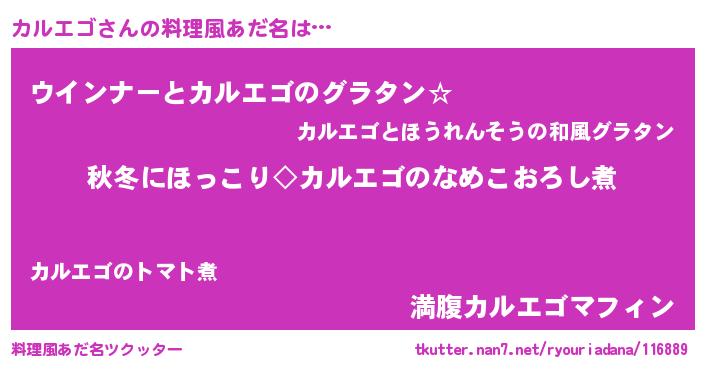 | ヘコむあだ名 | 『なまこ酢』『カルエゴ(苦笑)』 |