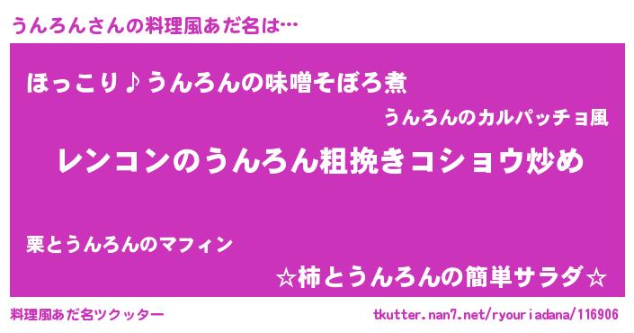 | 意味不明あだ名 | 『自称うんろん』『ペロリンうんろん』 |
