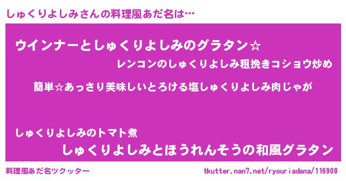 | 意味不明あだ名 | 『永久保存しゅくりよしみ』 |
