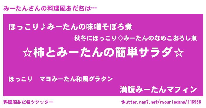 | 意味不明あだ名 | 『ペロリンみーたん』『永久保存みーたん』 |