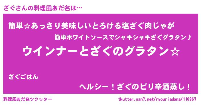 | 胡散臭い通販商品みたいなあだ名 | 『世界が平和になる高級そうな皿…その名も「ざぐ」』 |