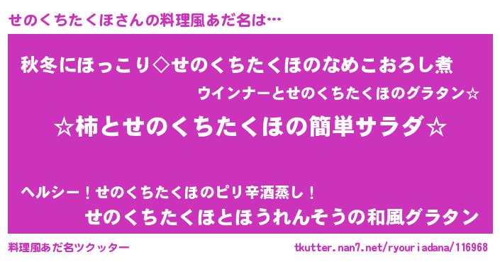 | ヒーロー風カッコイイあだ名 | 『ウルトラせのくちたくほマン』 |