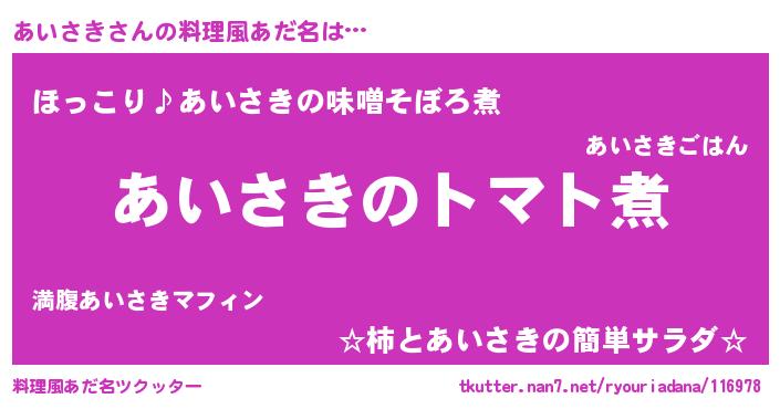 | ヒーロー風カッコイイあだ名 | 『正義の使者あいさき』『ネオアイサキ』 |