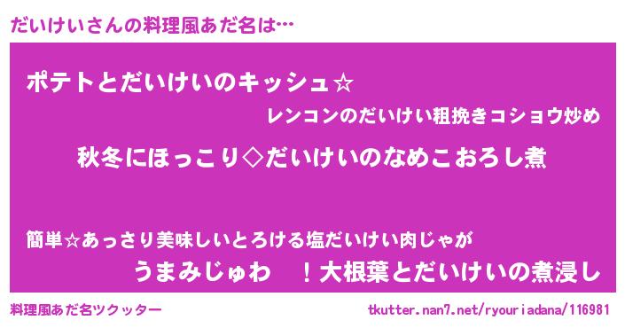 | 意味不明あだ名 | 『とにかく怪しいだいけい』 |