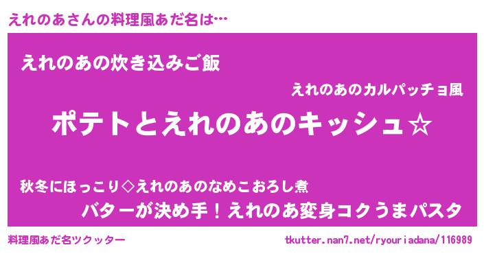 | 胡散臭い通販商品みたいなあだ名 | 『伝統あるサプリメント…その名も「えれのあ」』 |