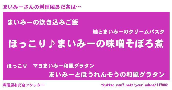 | 意味不明あだ名 | 『ペロリンまいみー』『自称まいみー』 |