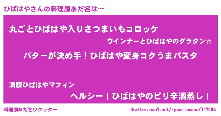 | ヘコむあだ名 | 『豆乳』『ひばはや(笑)』『ひばお』 |