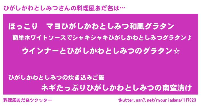 | 意味不明あだ名 | 『ひがしかわとしみつフォーエバー』 |
