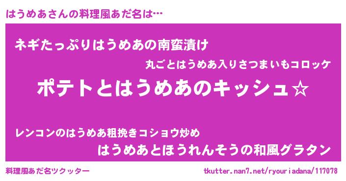 | 意味不明あだ名 | 『とにかく怪しいはうめあ』 |