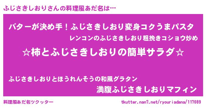 | ヘコむあだ名 | 『ふじさきしおり(爆)』『ふじっちょ』 |