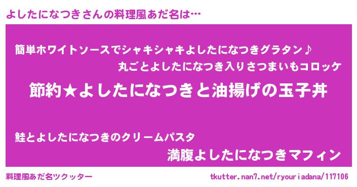 | ポケモン風あだ名 | 『ヨシチュウ』『ヒヨシタニナツキ』 |