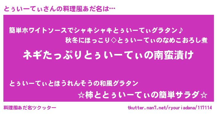 | ヘコむあだ名 | 『とぅにゅー』『とぅっぺ』 |
