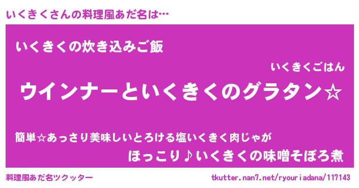 | ヒーロー風カッコイイあだ名 | 『ウルトラいくきくマン』『ネオイクキク』 |