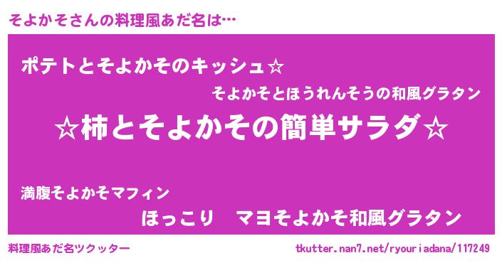 | 意味不明あだ名 | 『とにかく怪しいそよかそ』 |