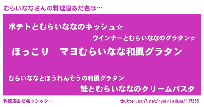 | 男性向けラノベタイトル風あだ名 | 『この素晴らしい世界にむらいななを!』 |