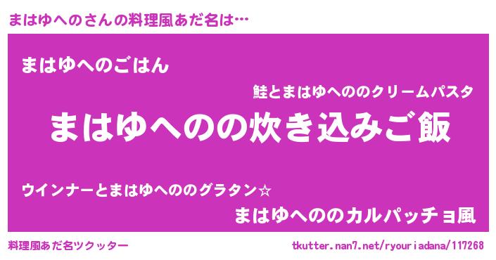 | ヘコむあだ名 | 『レバニラ』『まはにゅー』『まはお』 |