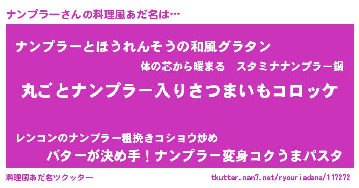 | 意味不明あだ名 | 『住所不定無職ナンプラー(71歳)』 |